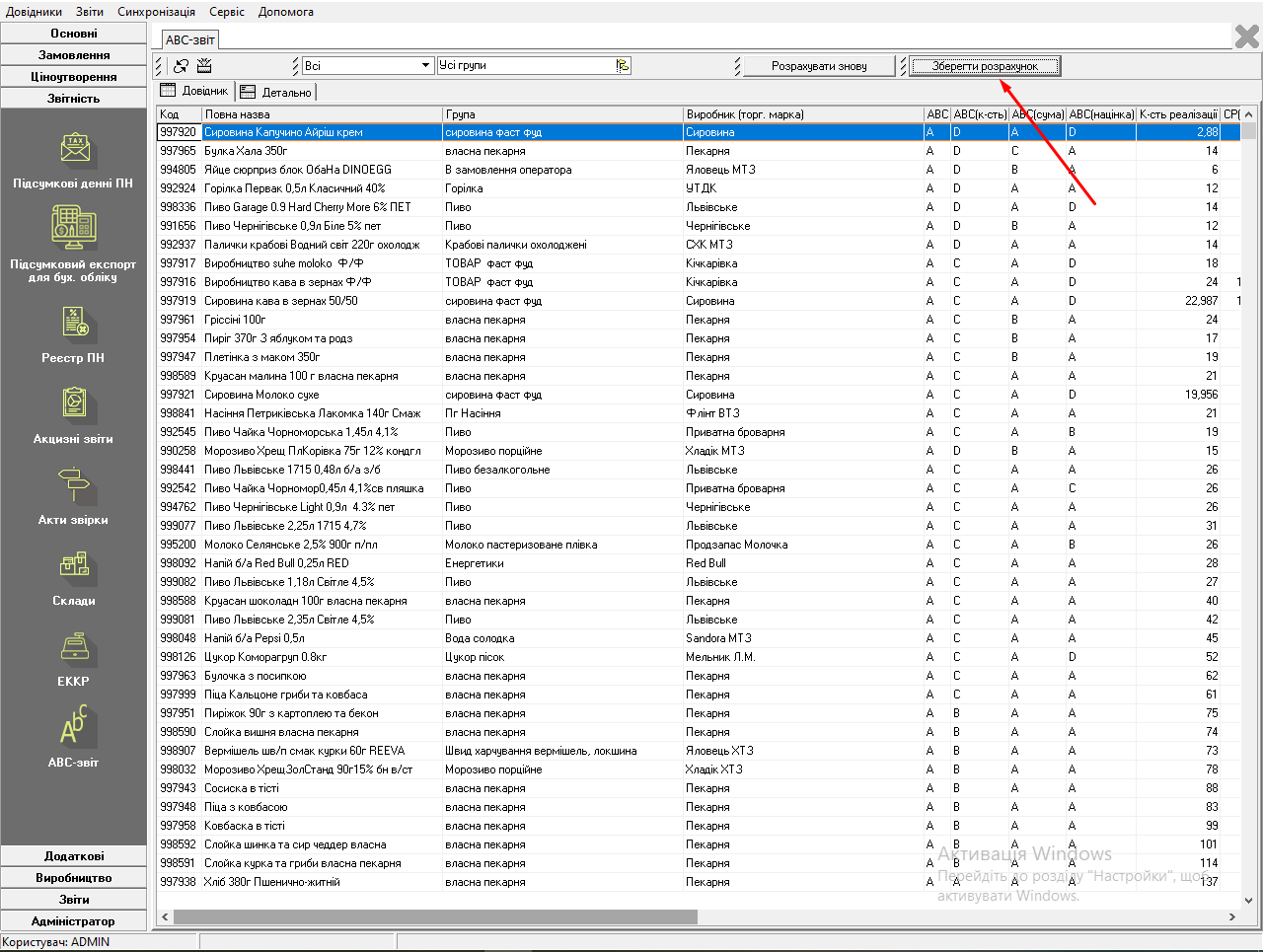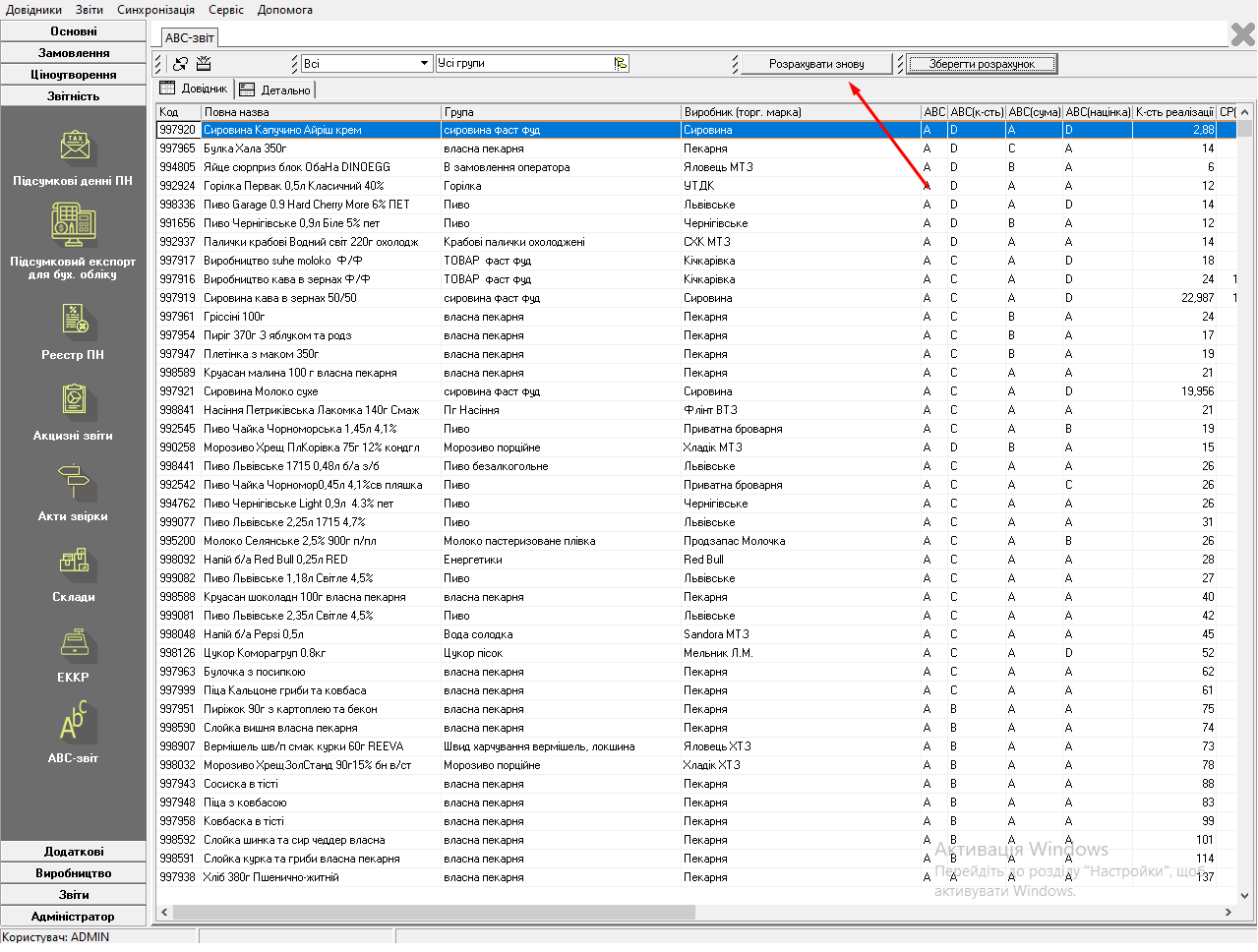 Для того, щоб встановити розраховані категорії для товарів, потрібно натиснути відповідну кнопку на верхній панелі: