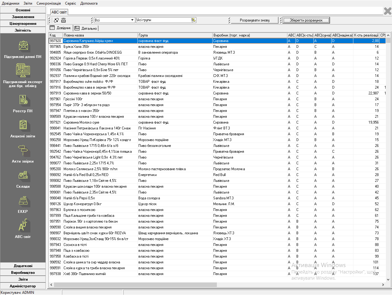 Аналогічно проводиться розрахунок по сумі націнки та кількості. В результаті товарній позиції присвоюється найвища категорія, по результатах трьох розрахунків.